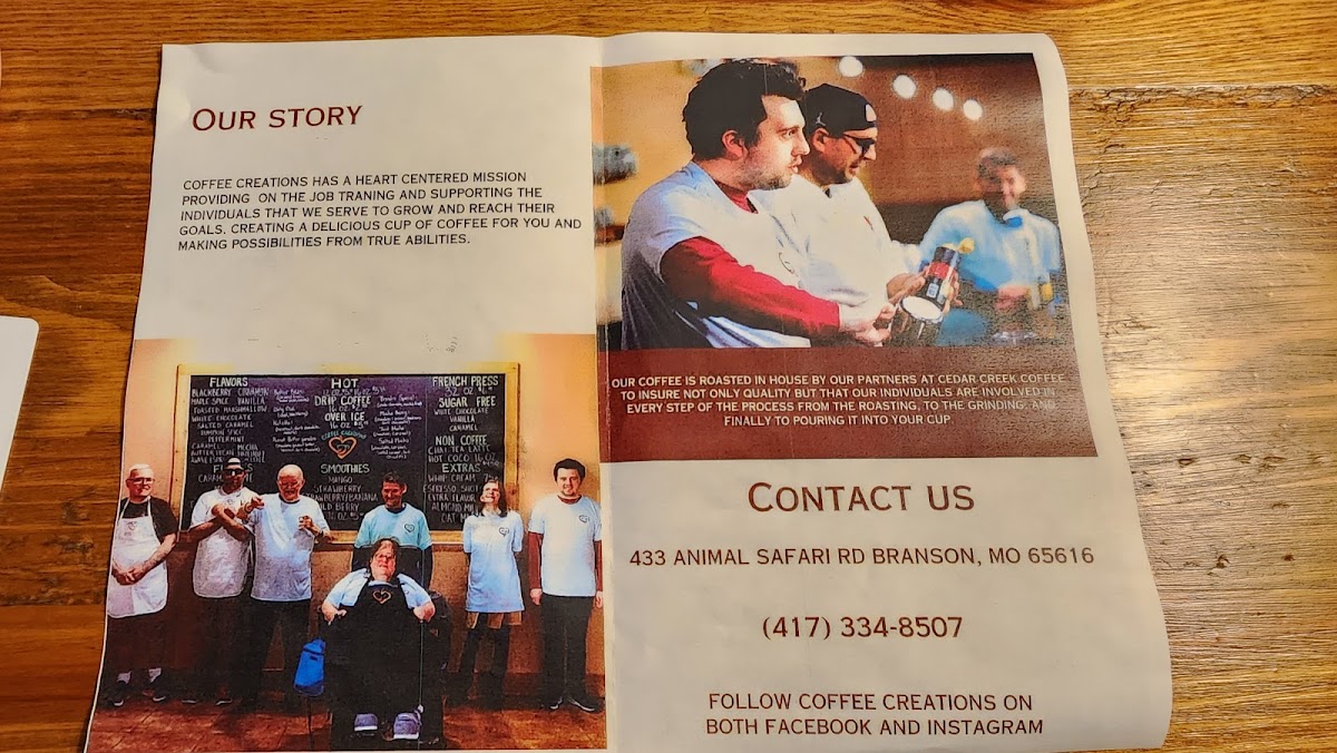 Welcome to Coffee Creations, the charming café at 433 Animal Safari Rd, Branson, MO, where coffee lovers unite! Whether you're a fan of classic brews or fruity smoothies, their menu has something for everyone.